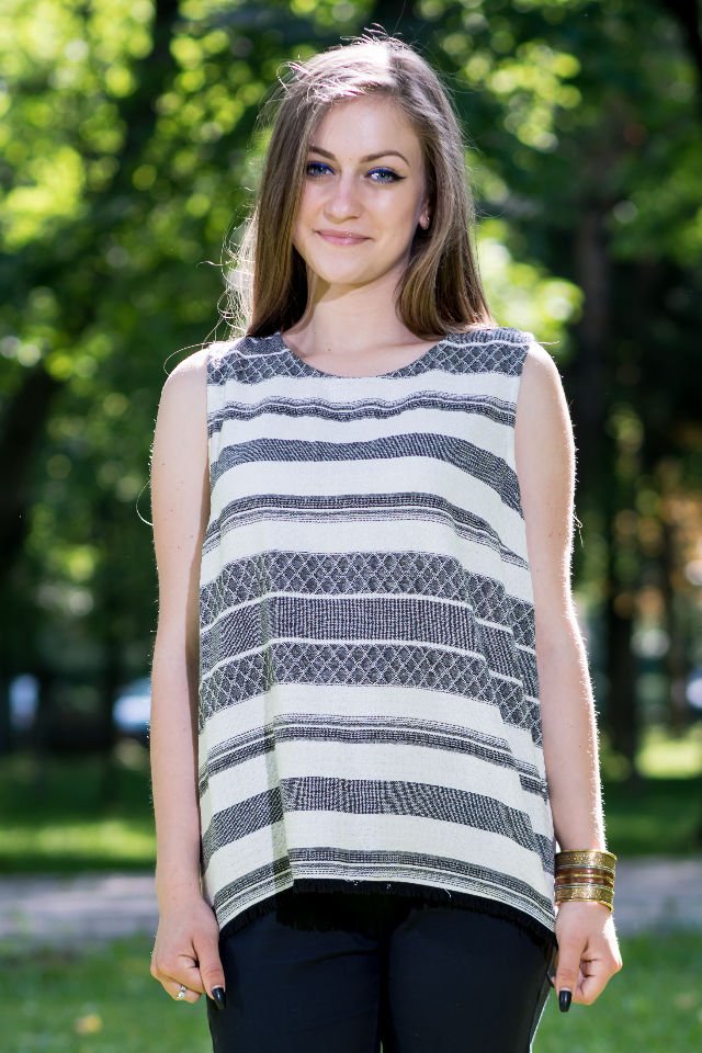 Bluza alba cu broderie multicolora, cu elemente florale si decorative pe partea din fata. Textura...