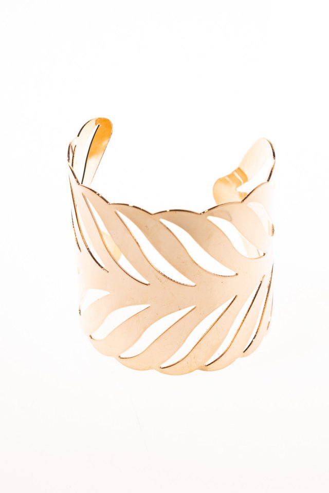 Bratara lata 6cm aurie cu model frunze. Bijuteriile din metal auriu creeaza o simbioza perfecta...
