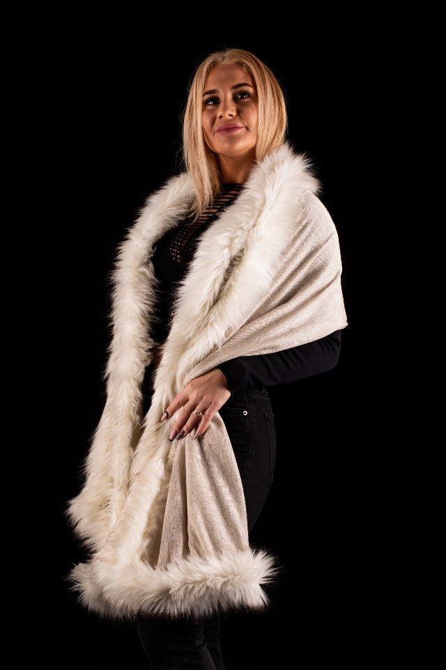 Sal alb-bej de lana cu broderie hand made si blanita artificiala India. Intotdeauna broderia hand...