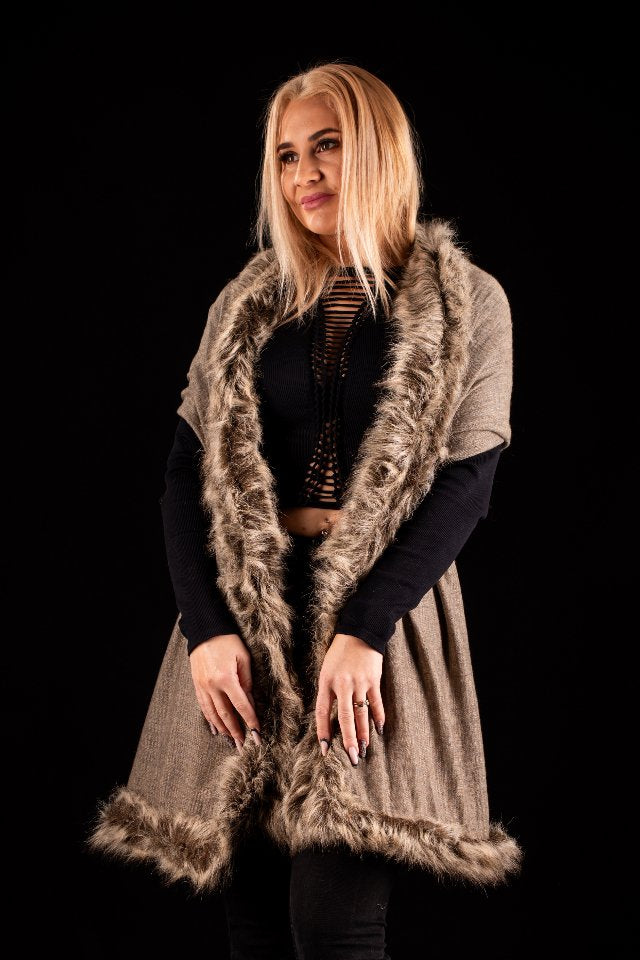 Sal negru-bej cu broderie hand made si blanita artificiala India