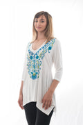 Bluză Alba Cu Broderie Turcoaz Mărime M-L