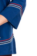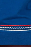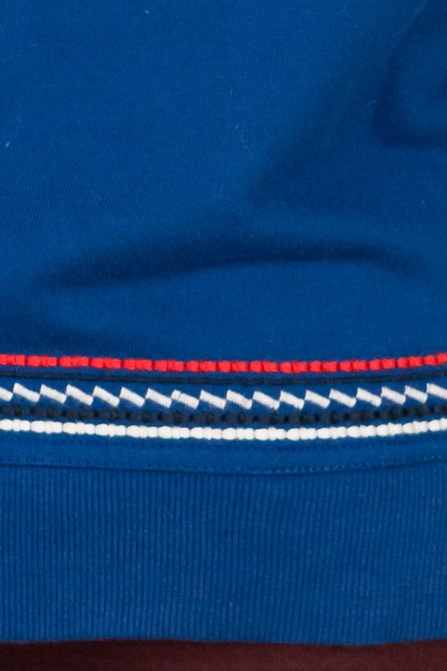 Bluza casual sport albastra cu broderie rosu-alb pe mansete si la terminatia bluzei.