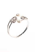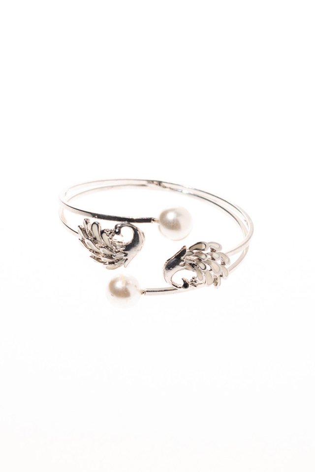 Cara iti propune acesta bratara subtire din metal argintiu cu doua lebede aplicate si margele albe.