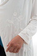 Cardigan alb asimetric cu broderie florala alba pe fata, spate si maneci. Textura fina si moale a vascozei imbinata cu elastitatea spandexului dau combinatia perfecta pentru o tesatura comoda si relaxanta de care sa te bucuri intreaga zi.