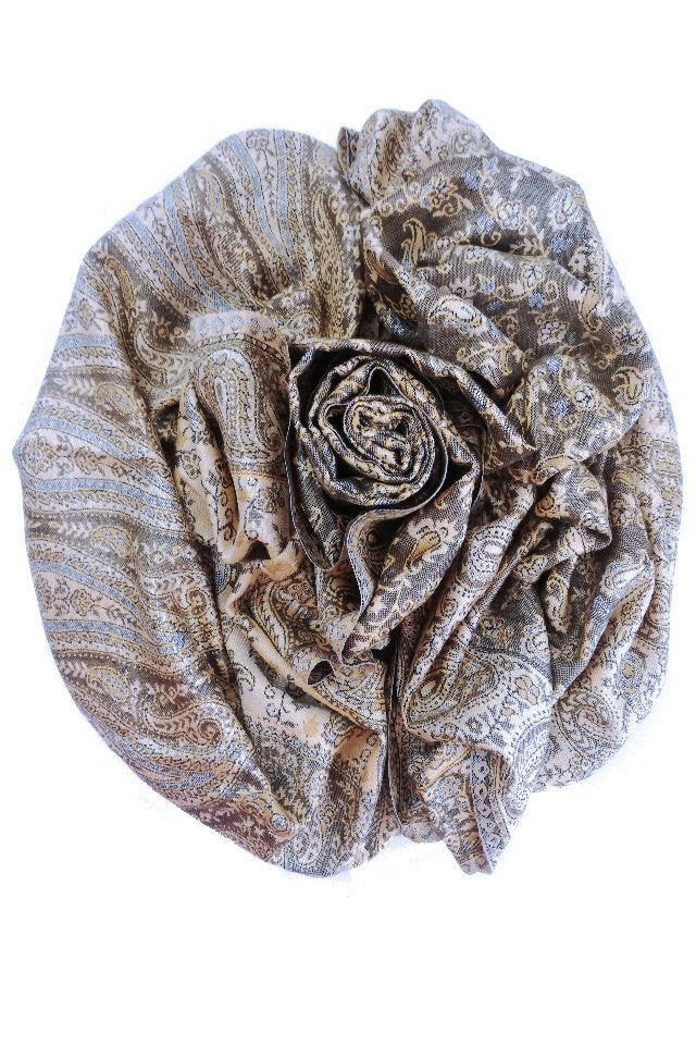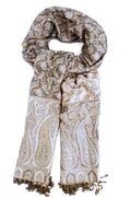 Eșarfă Cașmir reversibilă Paisley India, bej