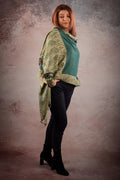 Esarfa Casmir reversibila Paisley India, verde-bej