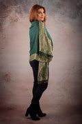 Eșarfa este țesută într-un superb model tradițional indian floral și paisley – un model de diferite forme curbe în culori diferite pe pânză – care este