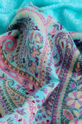 Esarfa-Sal Cara, din Lana Pashmina turcoaz cu broderie fina