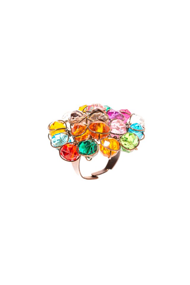 Inel lucrat manual cu pietre colorate si marime reglabila