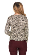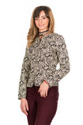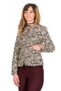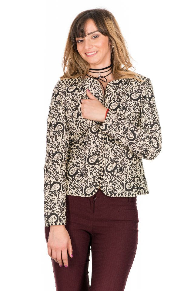 Crem cu print floral decorativ negru si cusaturi decorative, piesa este o incantare pentru garderoba ta, usor de asortat atat cu blugi cat si cu fuste, un "casual" practic si comod pentru orice moment al zilelor racoroase.