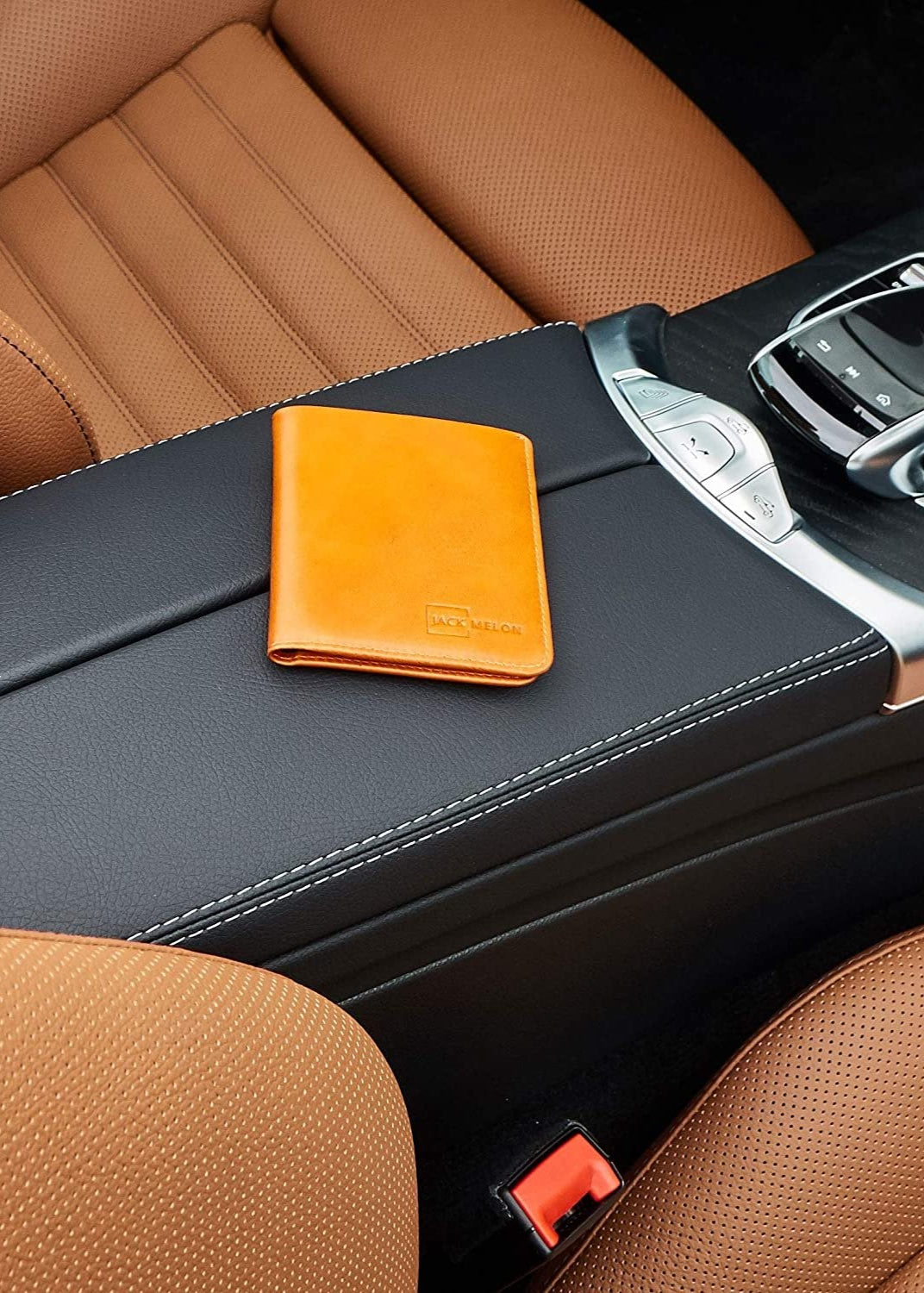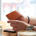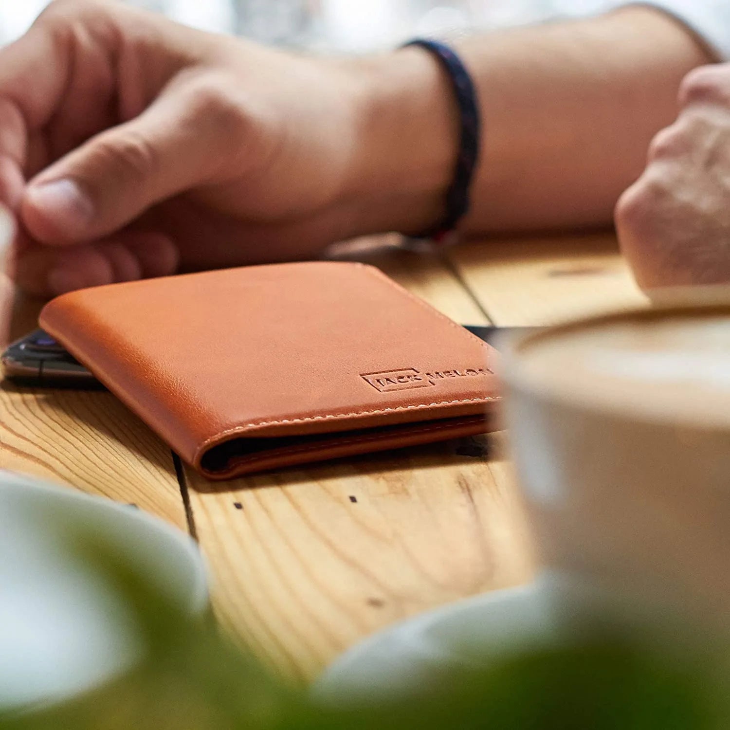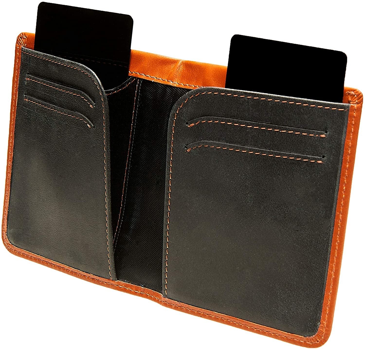 PROIECTARE NOUA - la moda, moderna si eleganta. Designul in doua tonuri în maro coniac si negru carbune confera portofelului subtire un plus de lux, fara a pierde rugozitatea pretioasa a pielii full-grain de inalta calitate.