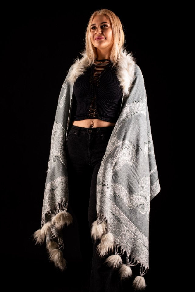 Intotdeauna broderia hand made a innobilat piesele vestimentare si le-a dat un plus de valoare si eleganta. Salul este confectionat din fibre rezistente de lână și acril. Prezinta două fețe cu elemente florale si paisley. Versatil, elegant si calduros este potrivit pentru zilele reci sau serile racoroase. Un produs ideal pentru un cadou elegant și luxos.