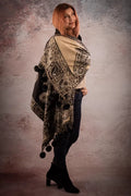 Sal negru-bej cu broderie hand made si blanita artificiala India