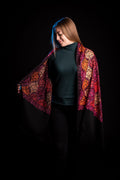 Acest sal negru de lana reversibil cu broderie colorata hand made India este confectionat din fibre naturale de lana, elegant si calduros potrivit pentru zile reci sau seri punctat de capetele franjurate. Este cadoul perfect pentru o persoană rafinată.